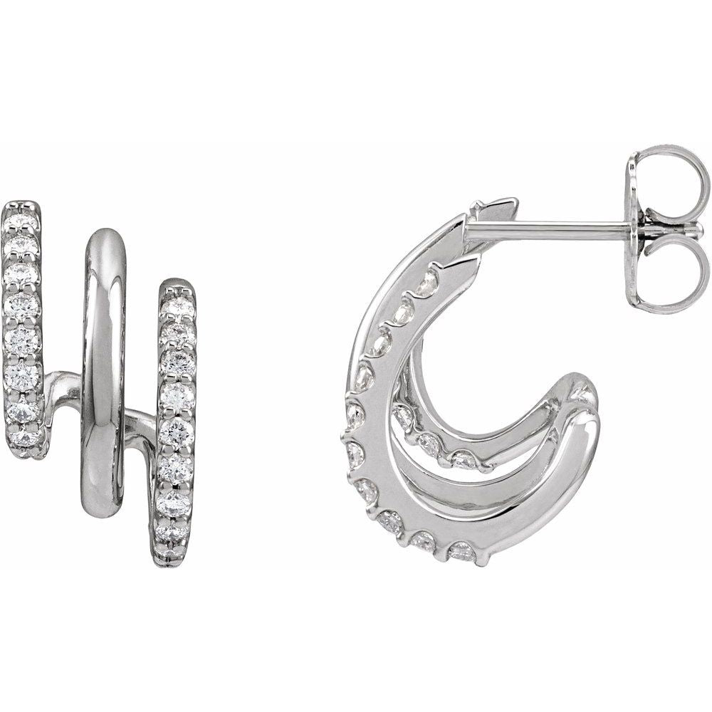 Diamond Stacked Triple J-Hoop Earrings