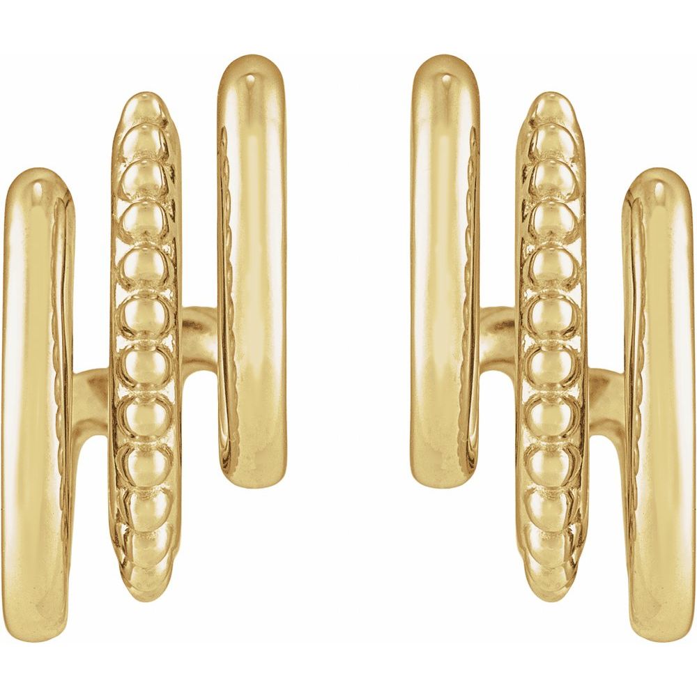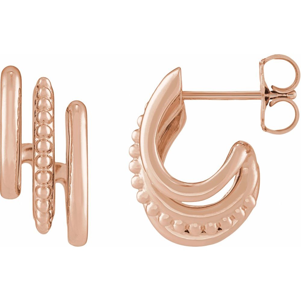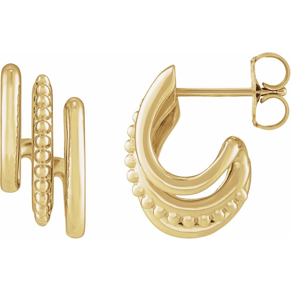 14k Gold Beaded Stacked Triple J-Hoop Earrings